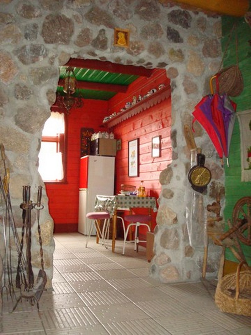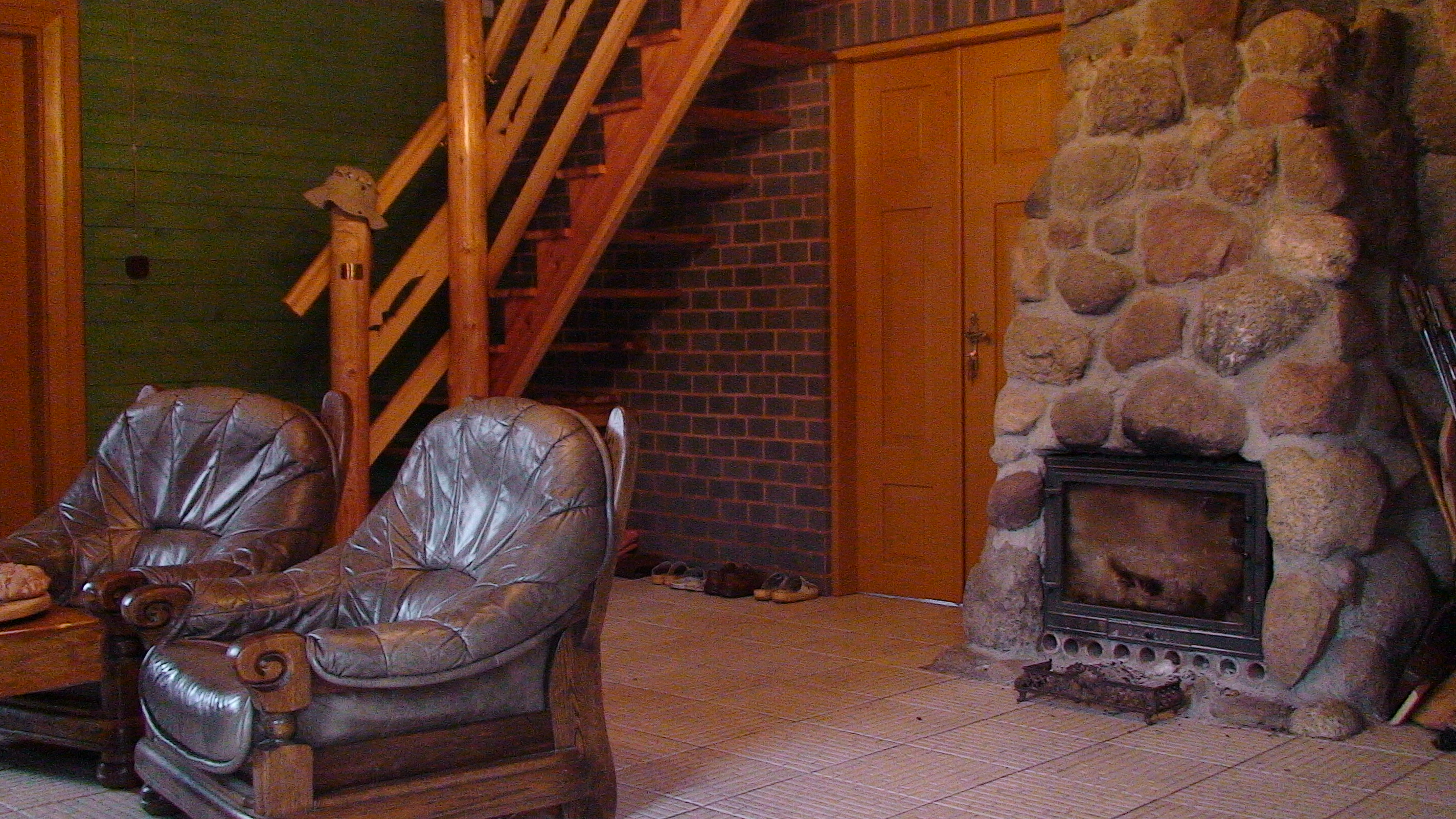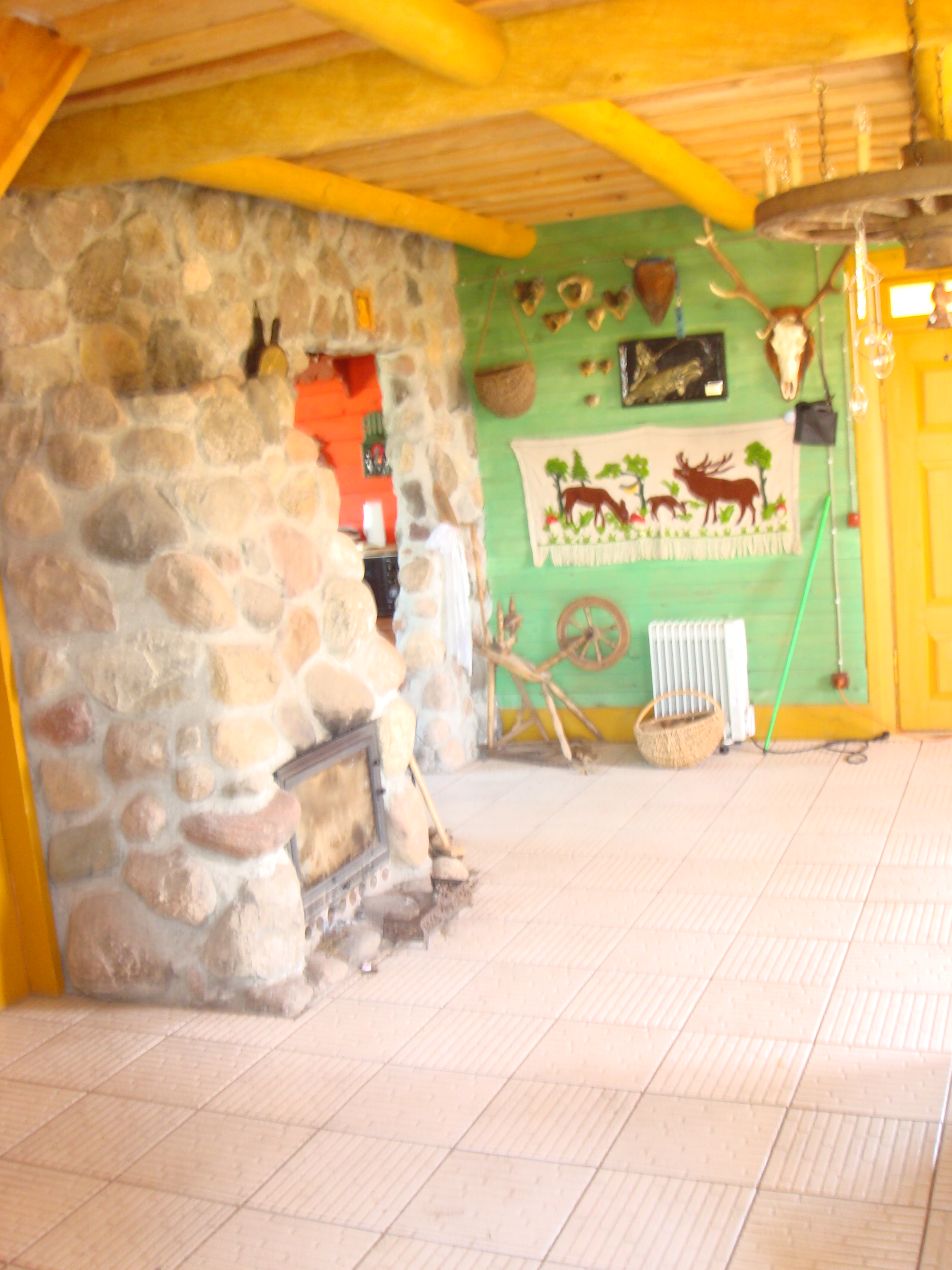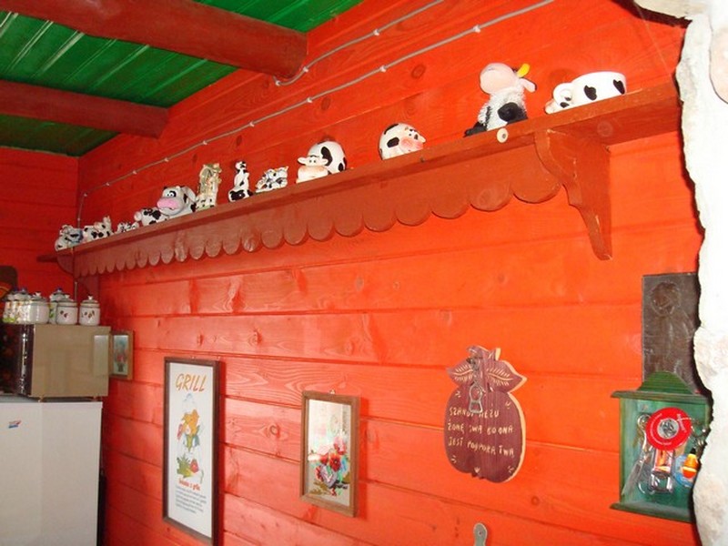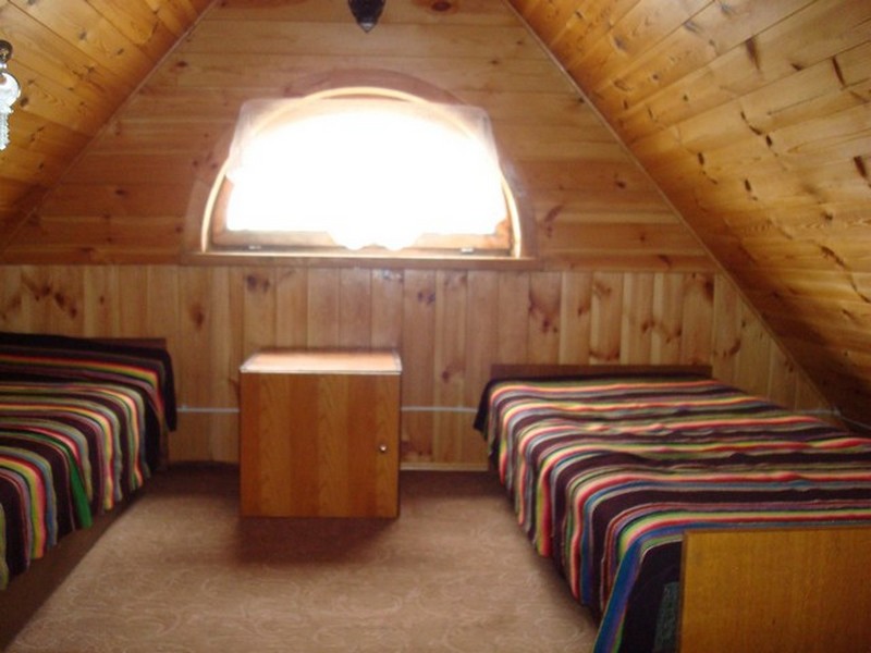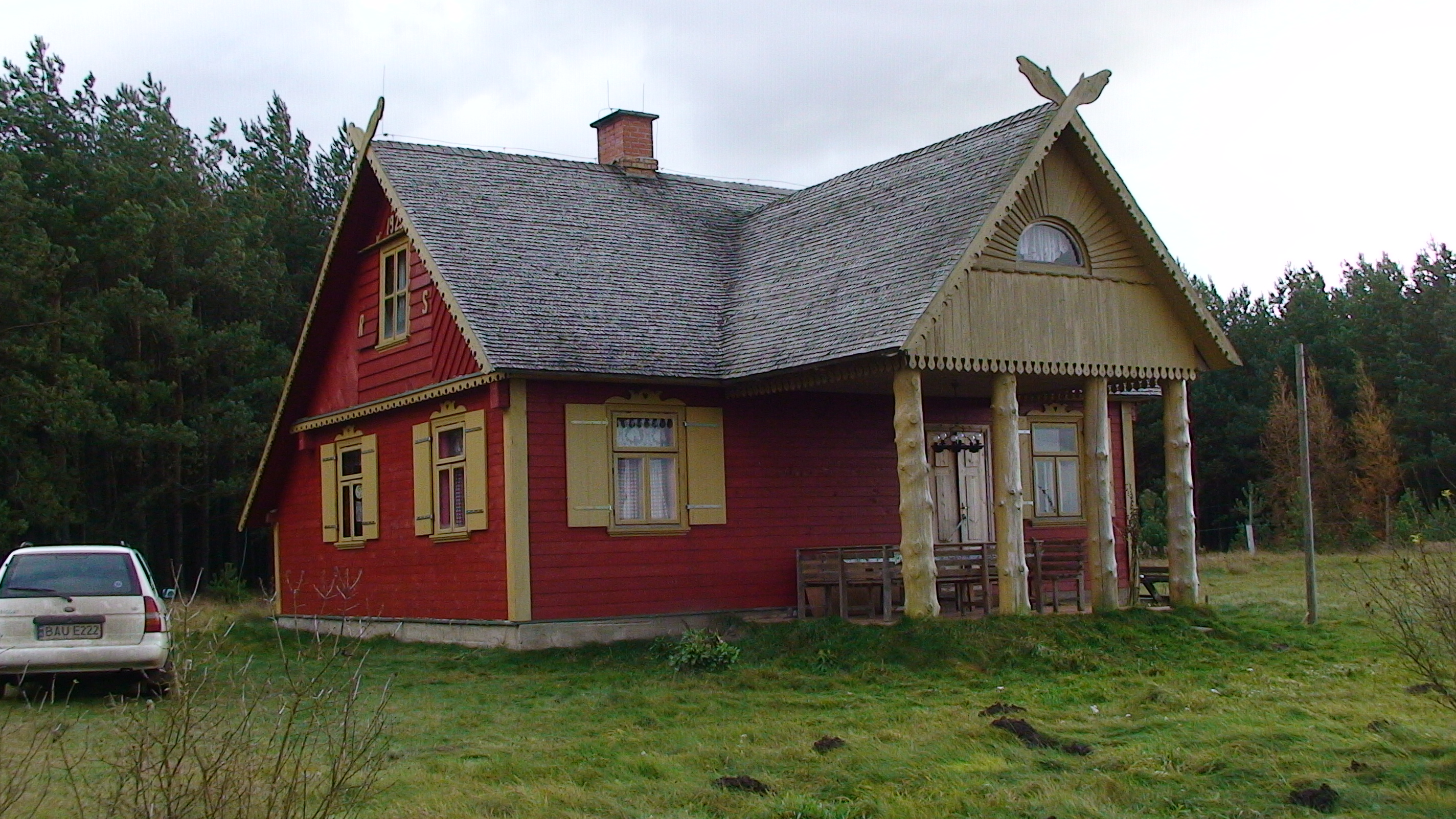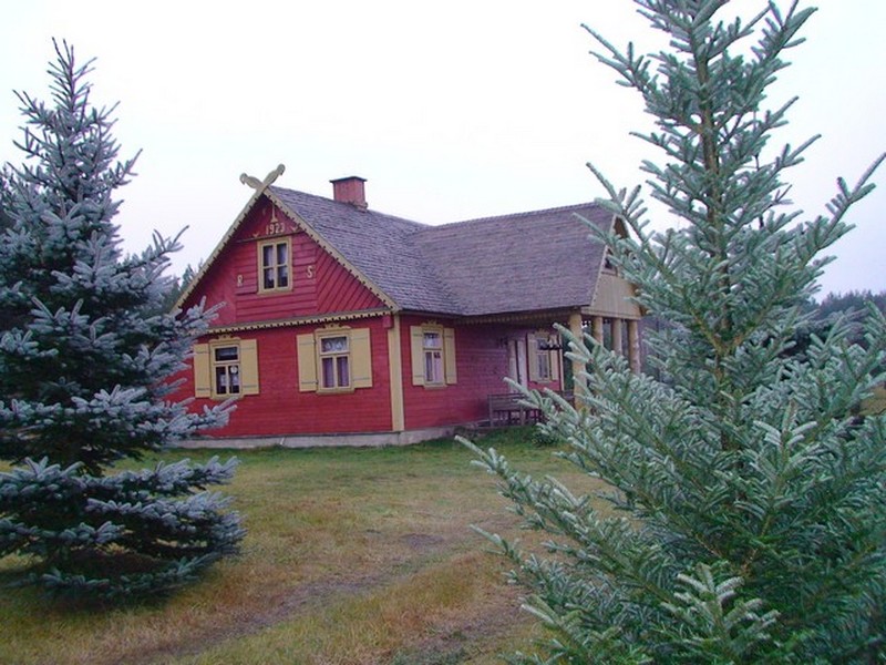 Budynek wiejski z 1923 r., przeniesiony w 2004 r. a następnie odremontowany w stylu podlaskim, kryty wiórem osikowym, zdobiony obrzynkami ze stylowym wnętrzem. Dom jest całoroczny, dwupoziomowy z tarasem wychodzącym na panoramę nadbiebrzańskich łąk. Na dole znajduje się stylowy myśliwski salon z kominkiem, przestronna kuchnia, sypialnia dwuosobowa z podwójnym łóżkiem, łazienka z prysznicem i toaletą oraz sień. Na piętrze są trzy duże dwuosobowe sypialnie (jedna z podwójnym łóżkiem i dwie z dwoma pojedynczymi łóżkami) oraz toaleta. W razie większej ilości gości istnieje możliwość zaaranżowania trzech dostawek. Dom jest w pełni wyposażony w naczynia kuchenne oraz pościel. Posiada również TV.