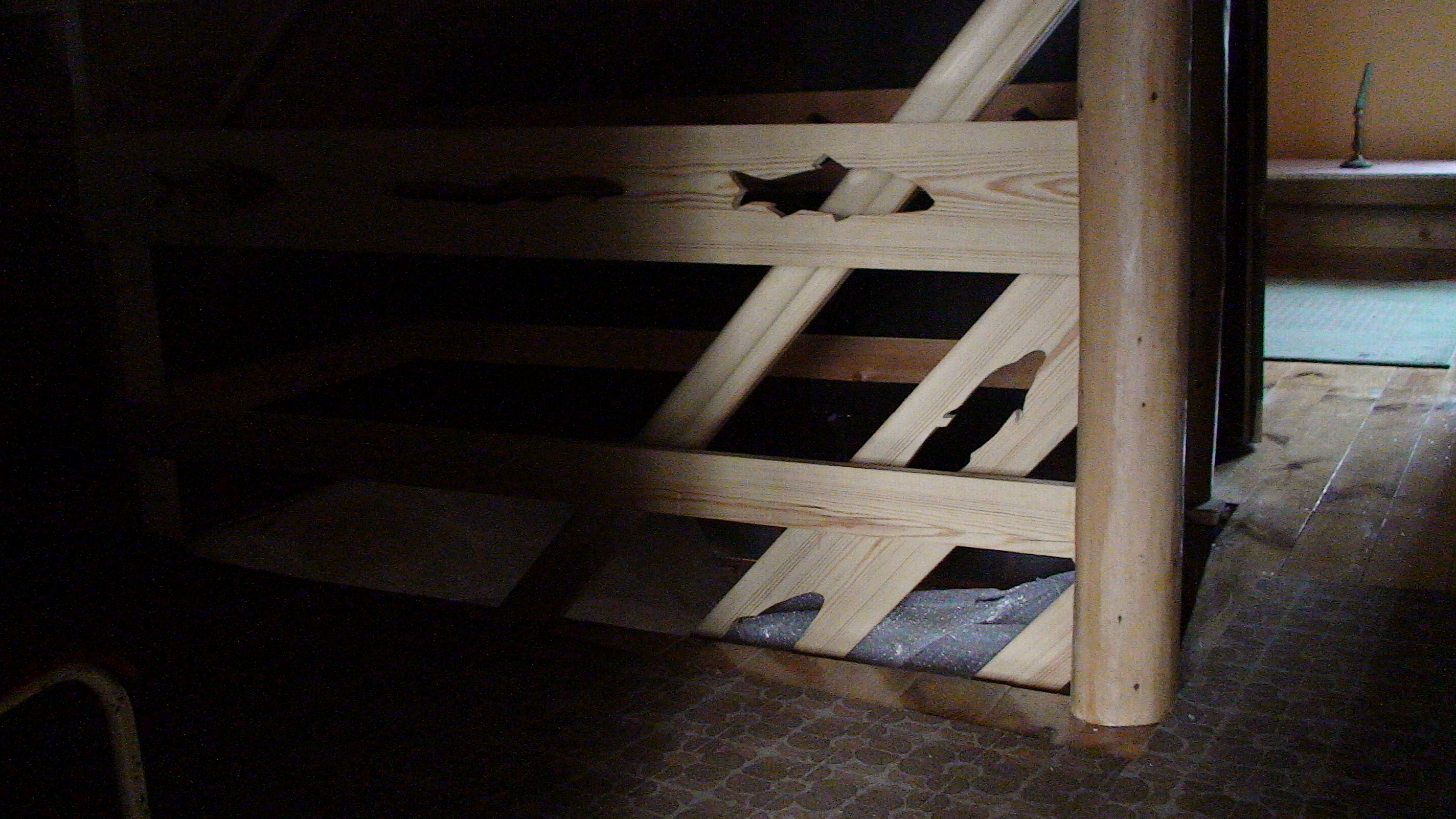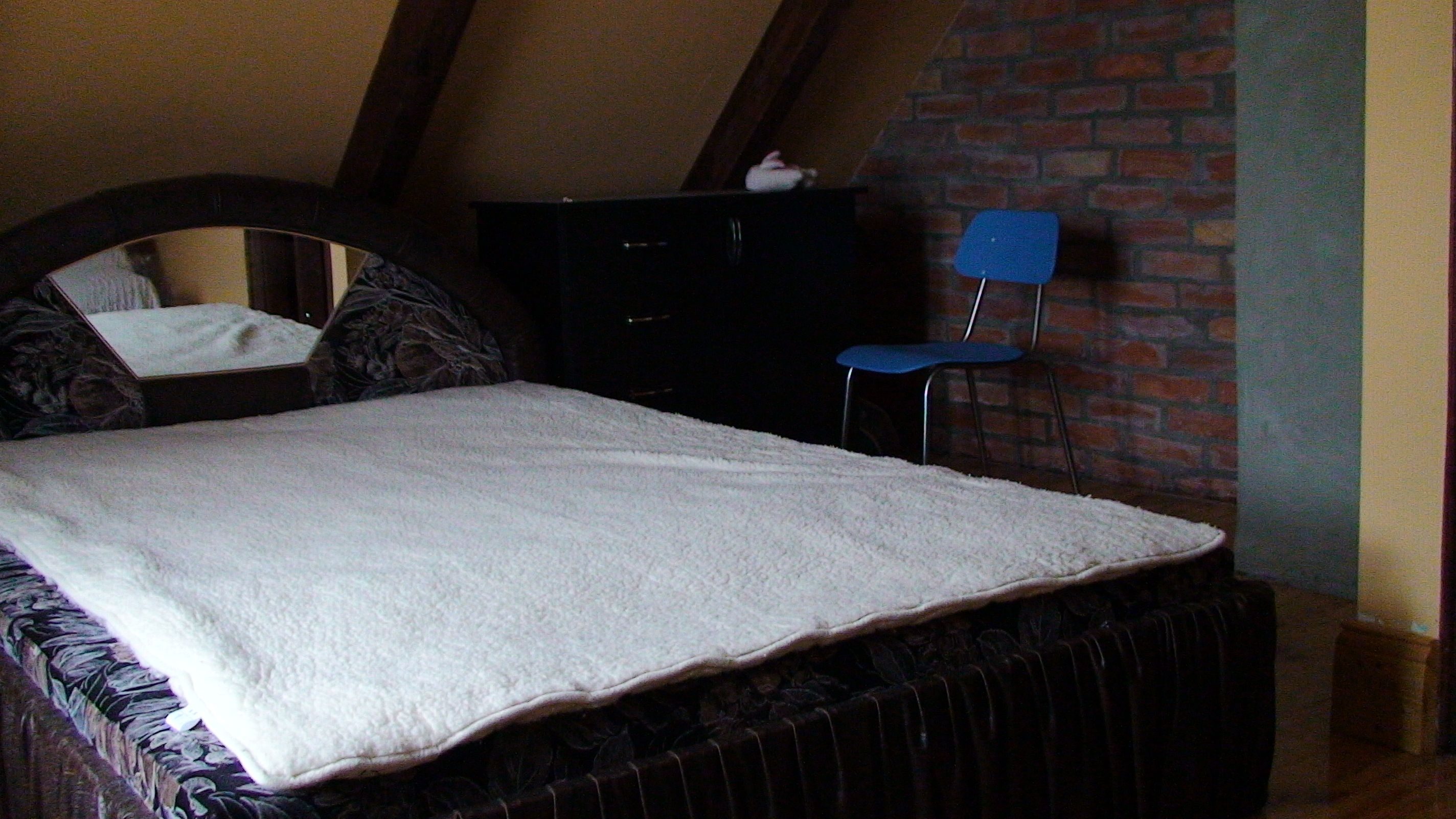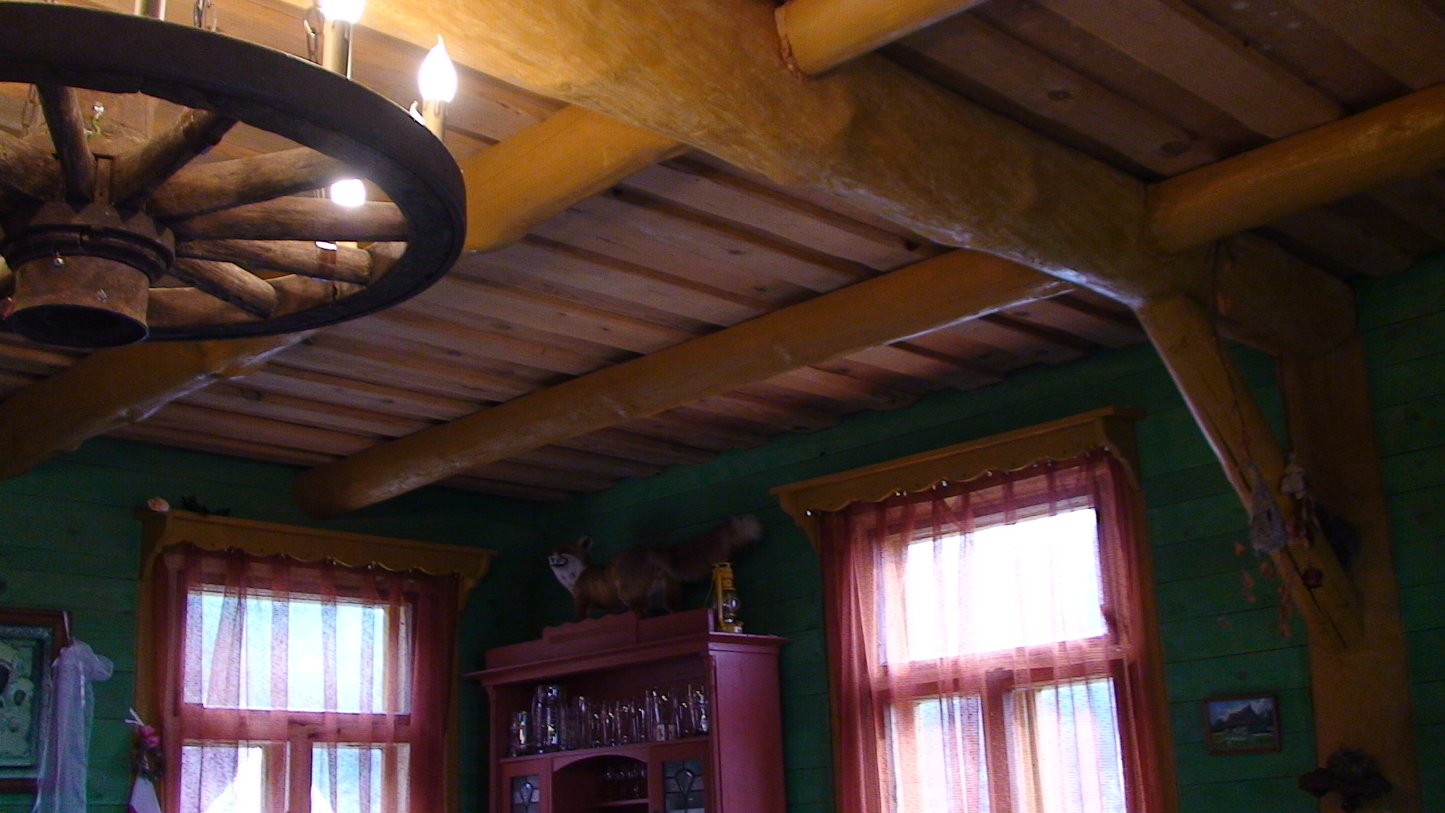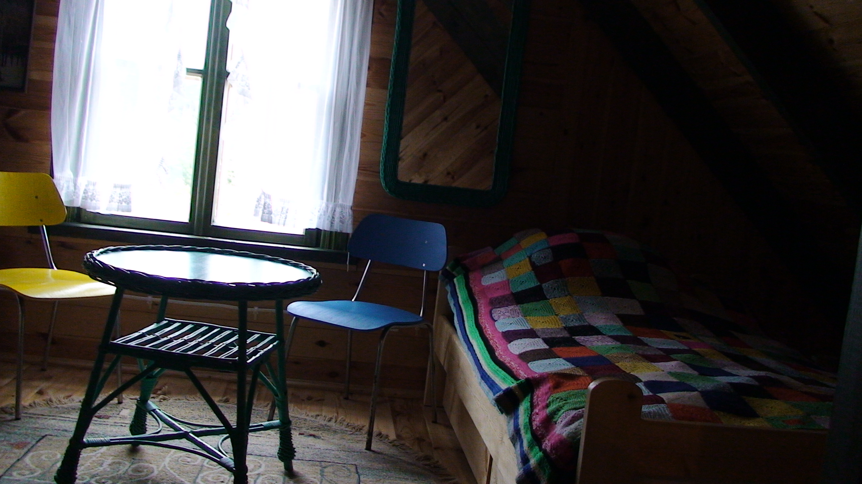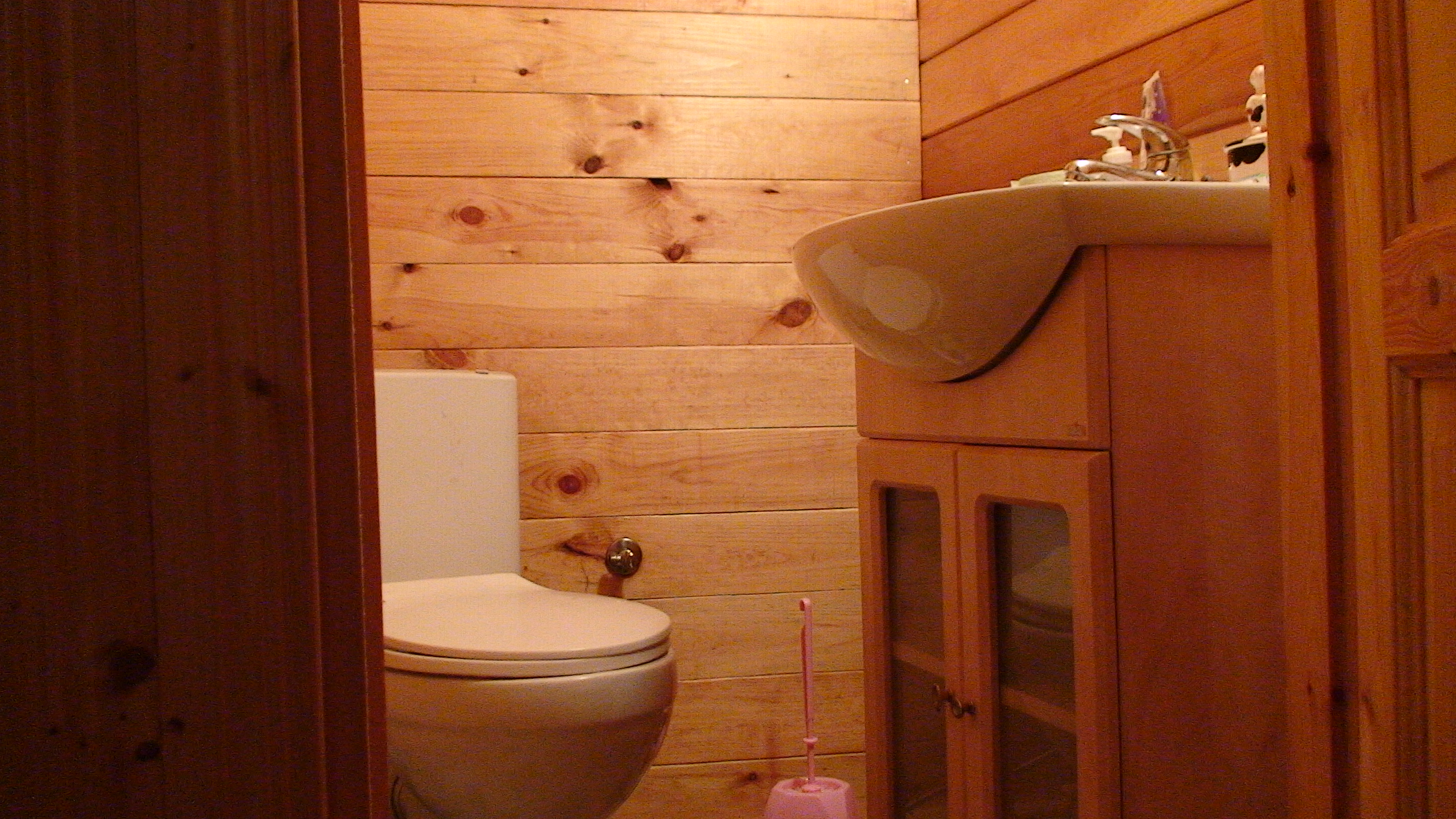 Budynek wiejski z 1923 r., przeniesiony w 2004 r. a następnie odremontowany w stylu podlaskim, kryty wiórem osikowym, zdobiony obrzynkami ze stylowym wnętrzem. Dom jest całoroczny, dwupoziomowy z tarasem wychodzącym na panoramę nadbiebrzańskich łąk. Na dole znajduje się stylowy myśliwski salon z kominkiem, przestronna kuchnia, sypialnia dwuosobowa z podwójnym łóżkiem, łazienka z prysznicem i toaletą oraz sień. Na piętrze są trzy duże dwuosobowe sypialnie (jedna z podwójnym łóżkiem i dwie z dwoma pojedynczymi łóżkami) oraz toaleta. W razie większej ilości gości istnieje możliwość zaaranżowania trzech dostawek. Dom jest w pełni wyposażony w naczynia kuchenne oraz pościel. Posiada również TV.